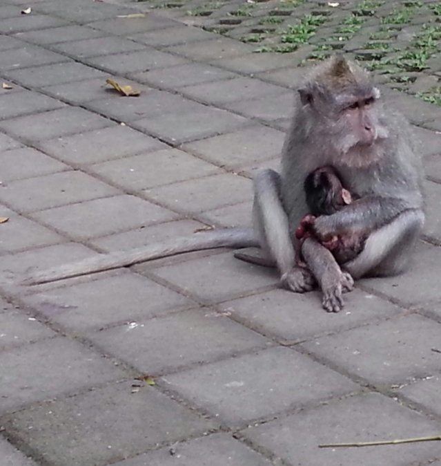 Monkeybaby just born in Monkeyforest Ubud Bali. Watch the curious and social behaviour of the group