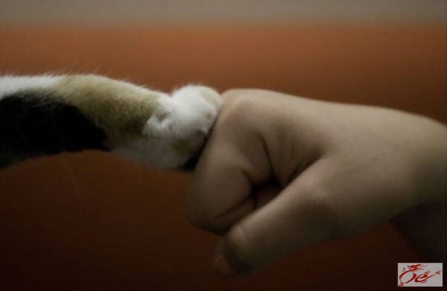 Wij gaan blijkbaar akkoord ... Zo'n poezenpoot bevestigt onze overeenkomst : we gaan samen luieren !