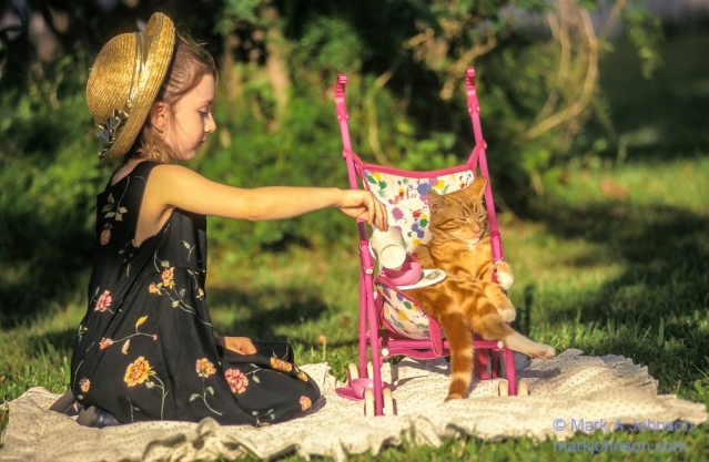 Als je geen zusje hebt , speelt minneke poes wel voor baby ... Ze houdt van wandelingetjes in de kinderwagen en geniet van een lekker vieruurtje . Het ideale gezelschap !