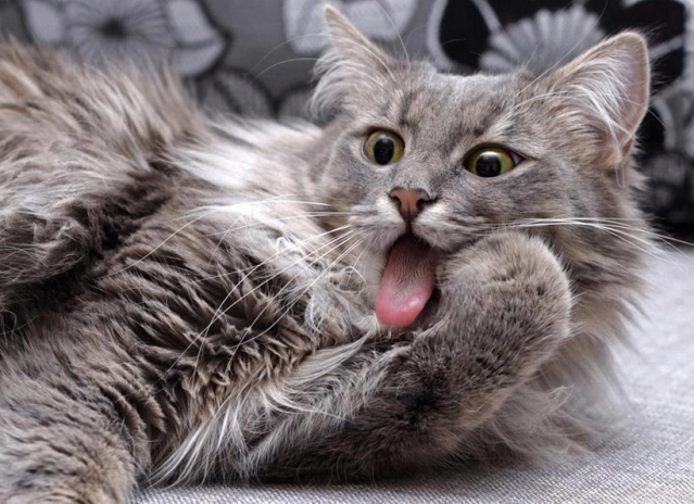 Je mag kattewasjes niet onderschatten ... zo'n langharige pels vraagt een grondig onderhoud en dan voel ik me weer zo fris als een hoentje !