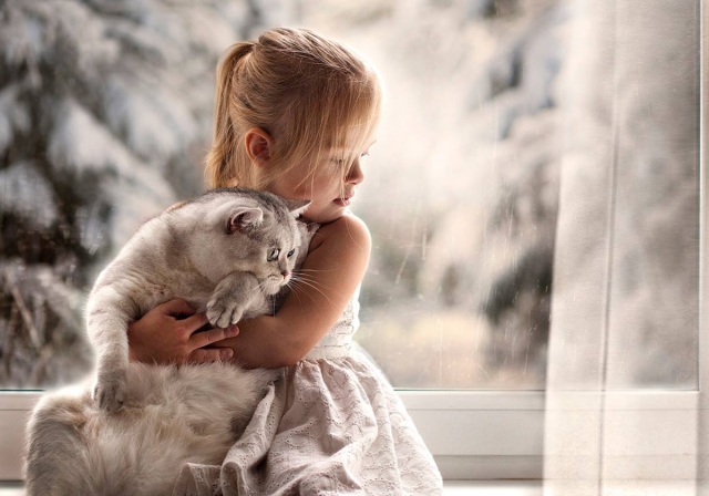 Je mag niet gulzig zijn , snoezepoes : laat de rest maar voor de kleine poes ... Je zou beter dieet volgen en een beetje meer bewegen , anders kan ik je niet meer oppakken . Te veel is trop en trop is te veel !