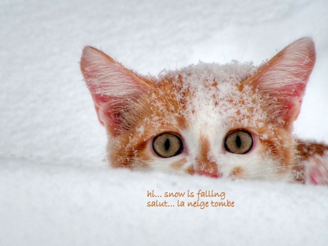 Sneeuwvlokjes op mijn rosse pels ... Wie heeft daarvoor gezorgd ? Ik zak er volledig in en het voelt erg koud aan . Dat mag niet te lang duren of ik word nog ziek !