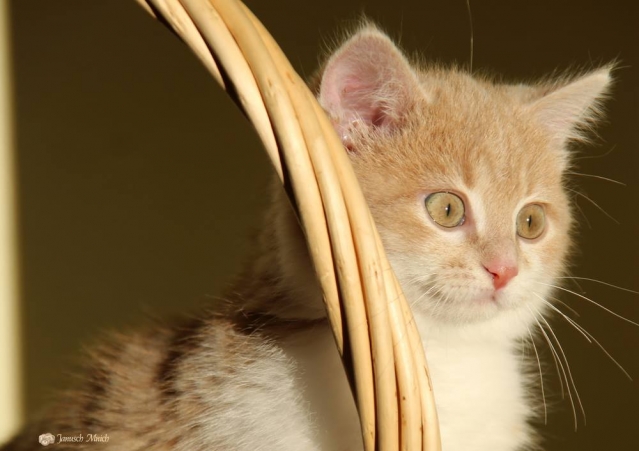 Wil die puppy ook in de mand liggen ? Met zijn snoetje duwt hij ertegen . Goed , maar ik wil er niet uit ! Zullen we dan samen de mand delen en wordt hij mijn vriend ?