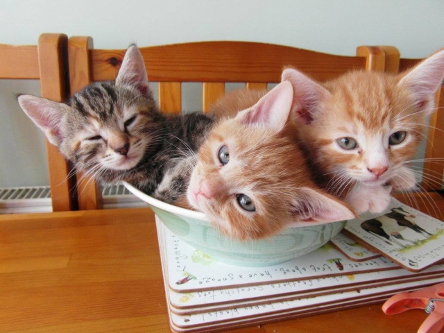 Wij zijn klaar voor het eten : daarom zitten we al ongeduldig te wachten in een kom . De onderleggertjes zijn er ook al ... Gaat het nog lang duren voor we lekkere hapjes krijgen ? We zitten op hete kolen !