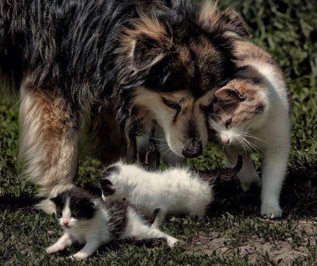 Ik vertel Woef dat hij lief moet zijn voor mijn familie ... Observeren mag , maar ze zijn nog erg fragiel om nu al mee te spelen . Daarom tracht ik hem af te leiden door poeslief zijn kop te aaien . Een slimme hond begrijpt dat !