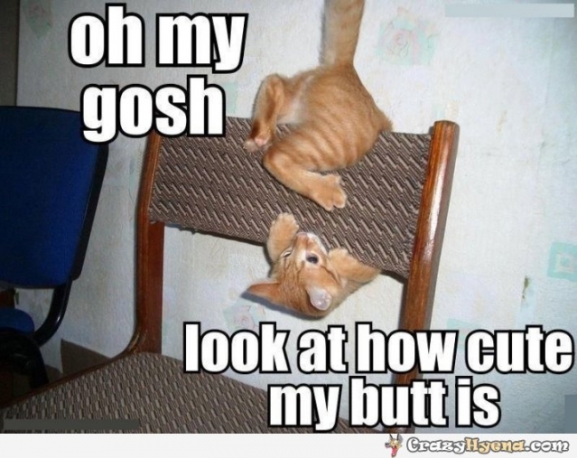 Ik heb geen spiegel nodig om mijn achterwerk te bekijken ... Stoelleuningen waarin je kan klauwen en je omdraaien leveren hetzelfde resultaat op !
