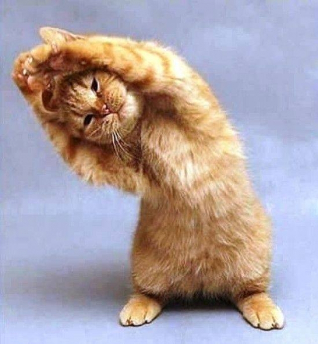 Als je ontwaakt raad ik je aan om al je spieren eerst te strekken en daarna te ontspannen . Dan voel ik me zo fris als een hoentje . Dit is een wijze raad van poes Kaat !
