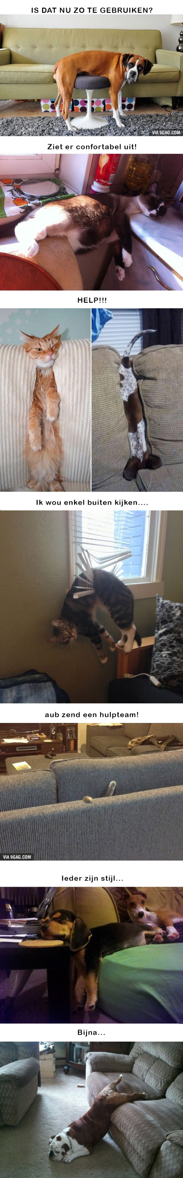 Zorg voor een comfortabel plekje voor je hond of kat zodat ze niet hoeven te experimenteren met gewaagde houdingen ! Bizar wordt dan overbodig !