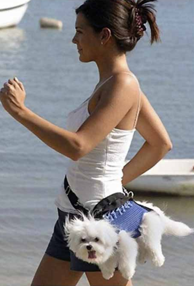 Wie legt deze mooie vrouw uit dat wandelen met de hond niet zo moet?