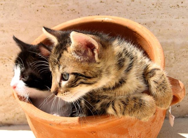 Deze aarden pot is een ideale schuilplaats om ons te verstoppen als die kwaaie hond weer in de buurt is ... Kleine troost : blaffende honden bijten niet !