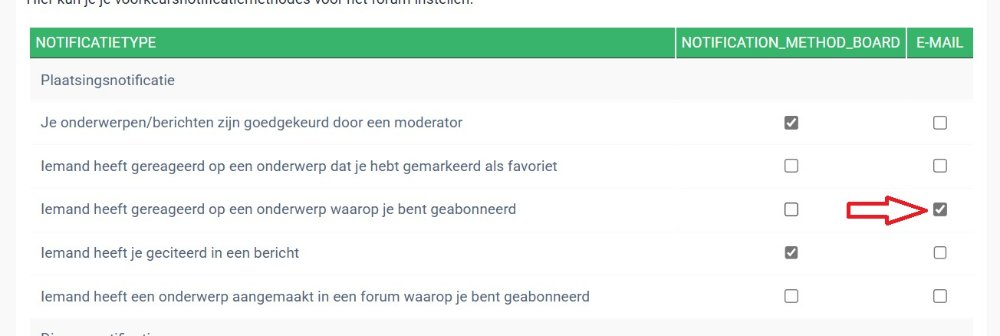 Hoe kan ik het gebruikerspaneel goed invullen zodanig dat ik een mailtje krijg als er een reactie hier