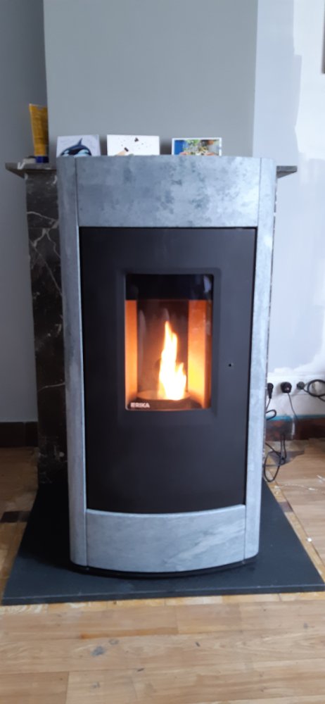 Allez, deel 1 is afgerond. de pelletkachel staat. het is een gezellige warmte. maar het is een bakbeest van een stoof! ( zal proberen foto te zetten later als ventje beneden is.)