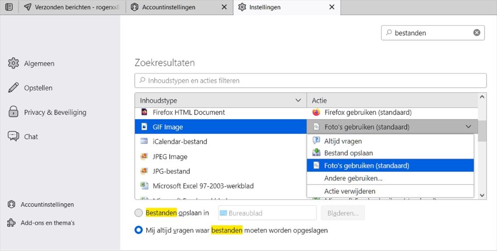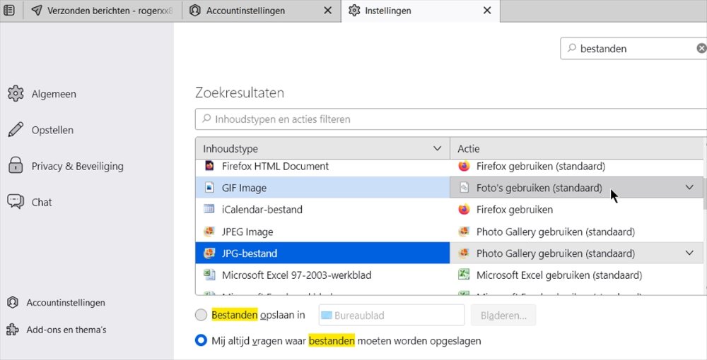 Als ik linkerzijde op JPEG Image klik en rechts op Foto's gebruiken (standard) kan verspringt aan linkerzijde van JPEG naar GIF.