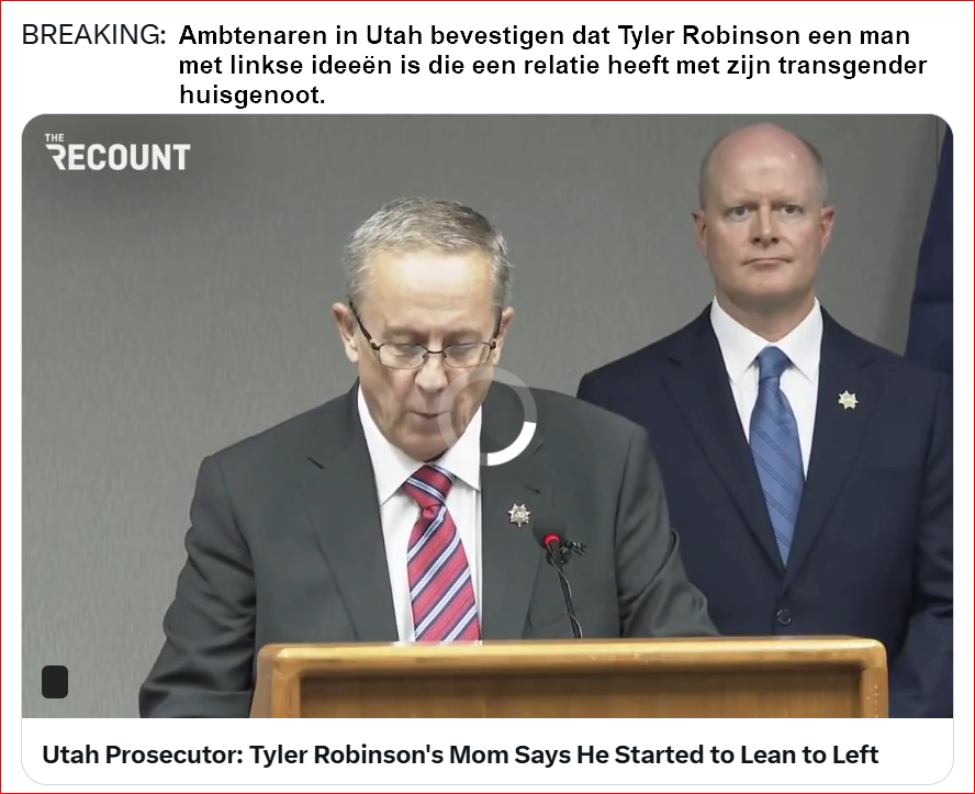 De moeder van Tyler Robinson, de jongeman die ervan beticht wordt Charlie Kirk te hebben vermoord, heeft aan de onderzoekers naar verluidt het volgende verteld: 'Mijn zoon begon een relatie met zijn huisgenoot, die in transgender transitie is, en hij neigde politiek steeds meer naar links. Hij was ook steeds meer pro-homo en transrechten-georiënteerd.'