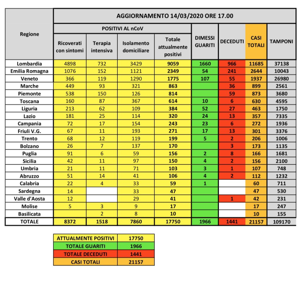 Het totaal aantal doden in Italië bedraagt 1.441.