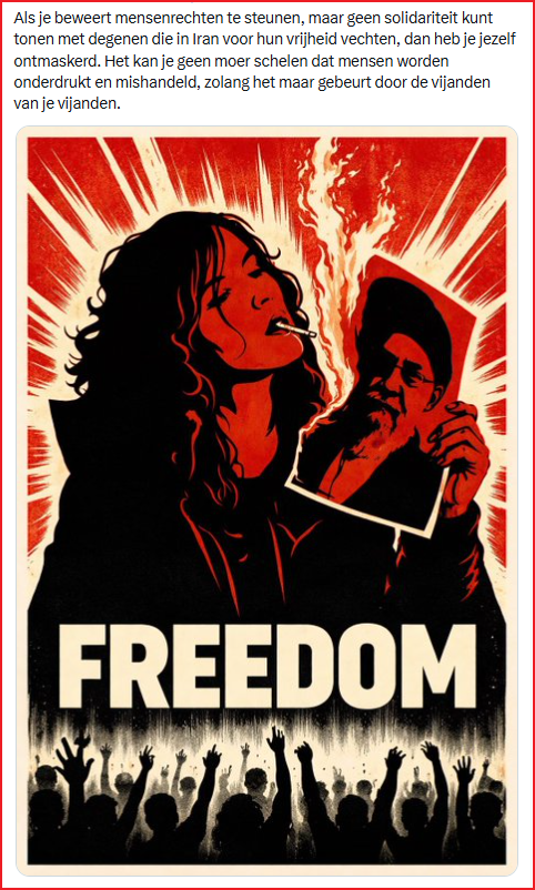 Vrouwen posten foto's waarin ze te zien zijn zonder hoofddoek, terwijl ze een sigaret aansteken met een foto van ayatollah Khamenei, de 'supreme leader'. Prachtig!