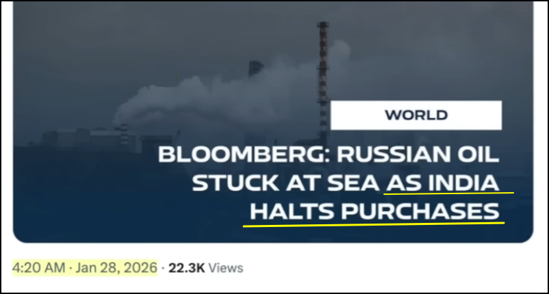 India trekt zich terug uit handel met Rusland en dit onder druk van Trump. India krijgt een lage tariff in de plaats.