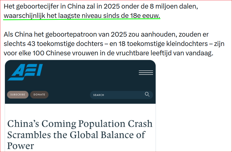 OK , ge hebt gelijk , die is vanaf 2022 ( dus nog niet zo lang geleden ) beginnen te krimpen. Oorzaak ? De jongeren willen de Westerse levenstijl halen ... Hun robots zullen de dreigende nood aan werkkrachten ( handarbeiders ) tegemoet komen.Wil. schreef: ↑Gisteren, 19:39Neen, Fred. Alwéér moet ik je ontgoochelen. Je kennis is niet erg up-to-date.
