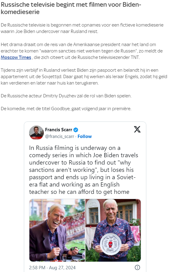 Eerst moet de volgende president van VS dan wel de sancties op het financieel verkeer van Rusland opheffen. Biden kan anders fluiten naar zijn royalties, zijn enige inkomsten nog na januari 2025.