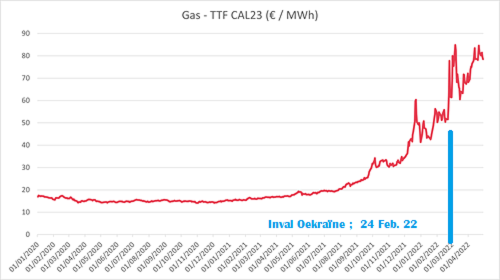Ten eerste toont de grafiek niet het ware effect van de oorlog. De koers van gas is niet tot ± 85 gestegen, maar wel tot 340!