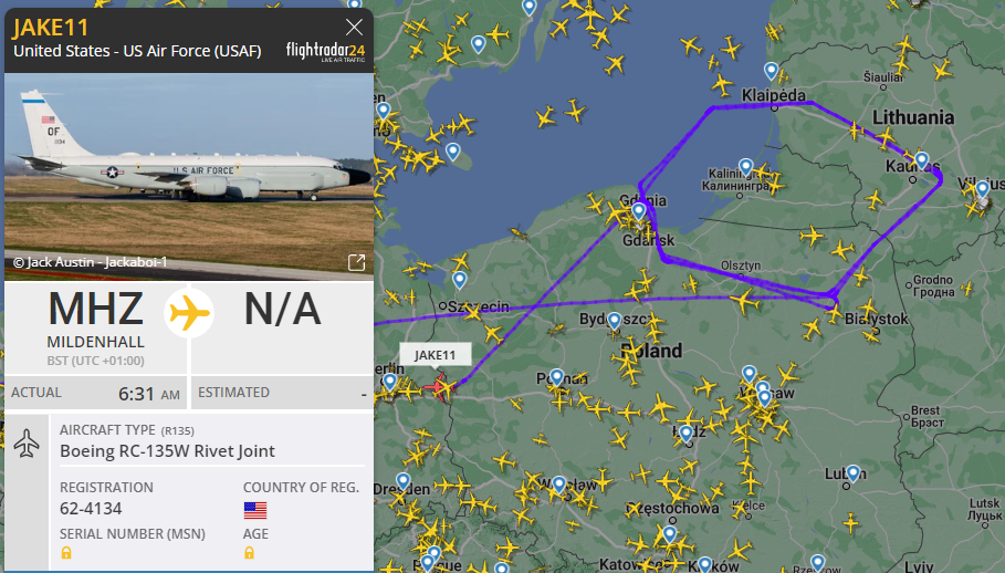 Zouden de Russen ook dergelijke vrees neerpennen als een US RC-135V/W Rivet Joint rondjes rond Kaliningrad toert ?