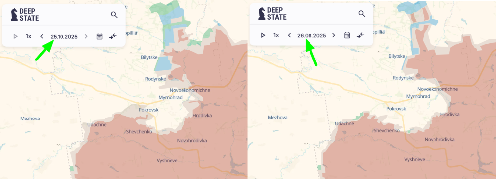 De vooruitgang op 2 maanden tijd. Een jaar geleden stonden ze ook al aan de voordeur van Pokrovsk.