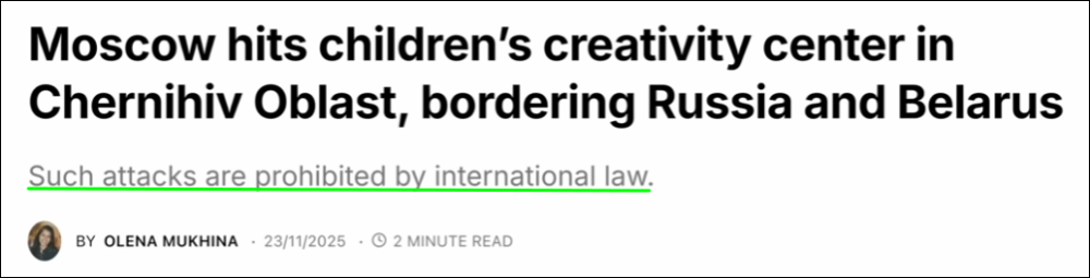 Waar Poetin echt goed in is, is het bombarderen van kinderdagverblijven, opvangplaatsen voor kinderen, kleuterscholen en nu heeft hij een nieuw doelwit gevonden: een 'creativity center' voor kinderen.