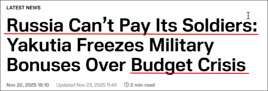Het geld is op. Poetin kan nauwelijks nog jonge mannen verleiden om in het leger te gaan want het geld is op.