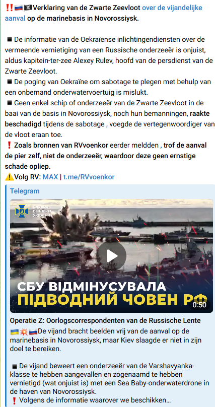 Net zoals de selfie van Zelensky genomen voor een volledig onbeschadigd monument aan de ingang van Kupyansk ( zie bericht pag. 975 om 18.42 uur) zal de waarheid wel ergens in het midden liggen. Dat heet propaganda en wordt door beide zijden gebruikt.