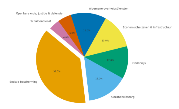 In het geheel van de uitgaven zijn rsz-uitgaven, pensioenen, werkloosheidsuitgaven, gezondheidszorg de grootste brokken.