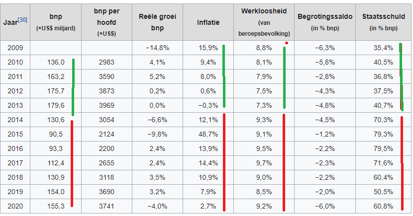 " Door de annexatie van de Krim en de veiligheidssituatie in het oosten van het land kreeg de economie in 2014 en 2015 zware klappen en liep de inflatie sterk op. In 2016 was het bbp gedaald naar $ 93 miljard of $ 2200 per hoofd. Daarna trad tot 2020 een sterk herstel op."