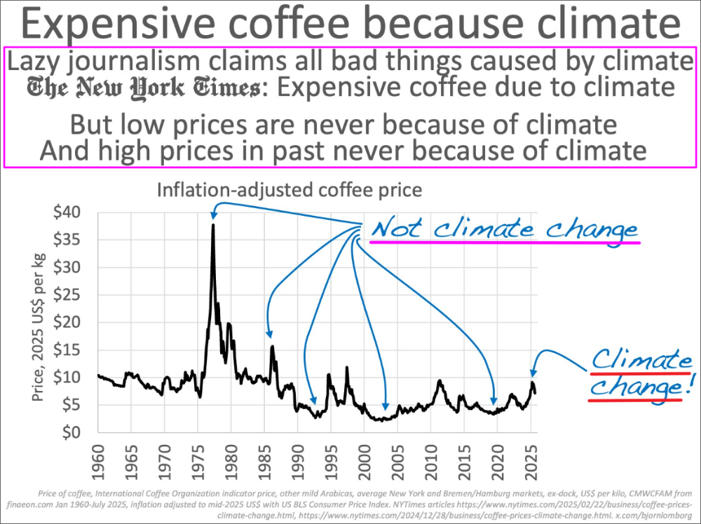 De koffieprijs stijgt en waaraan zou dat moeten liggen? Aan de opwarming van de aarde, vanzelfsprekend.