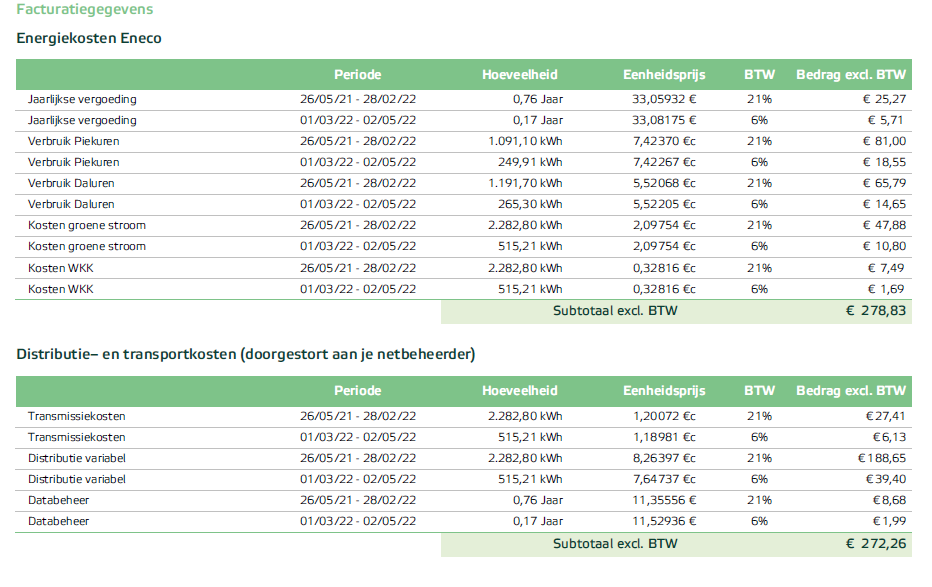 Dit is een afrekening voor "Elektriciteit: Eneco Zon & Wind Go" .Volgend jaar wordt dit "Elektriciteit: Eneco Zon & Wind Flex" , en dan zien we wel wat de meerkost zal zijn. Het "Go" contract kan je niet meer krijgen.