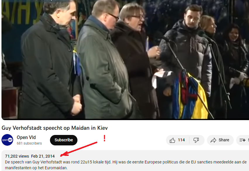 Wijze praat van Goddeeris : https://www.vrt.be/vrtnws/nl/2014/02/22 ... 1-1886782/ met ""Verhofstadt stelt zich in het Europees parlement bijzonder scherp op tegen de fascisten, terwijl hij ze nu gaat toejuichen in Kiev. Europa gaat zich dit beklagen, wij zijn betrokken partij geworden.""