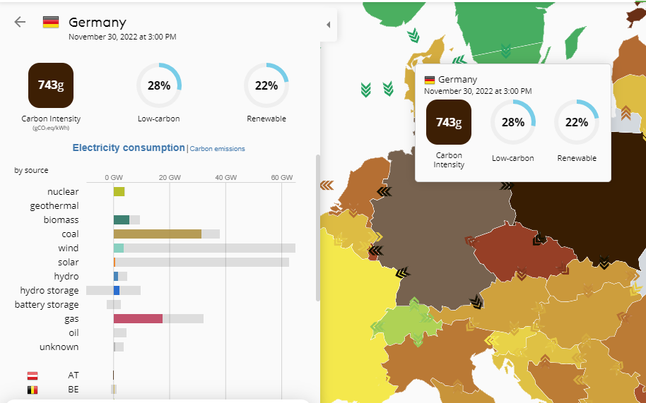 En DIT is dan het gevolg van het saboteren van de Nordstream pijpleidingen .. :evil: Duitsland moet nu meer elektriek met kolen aanmaken dan met gas. En op de koop toe exporteert het voor het ogenblik ook nog eens via Nederland elektriek naar de saboteur. ( kijk naar de donker bruine pijlen en de licht bruine pijl vanuit Nederland naar het VK )