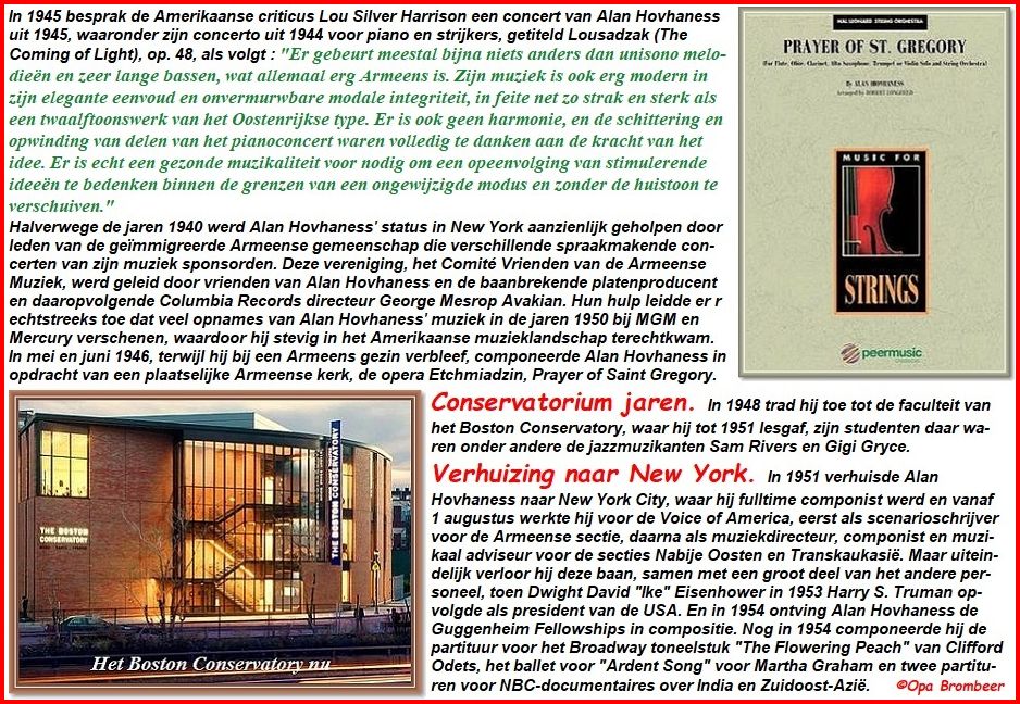 Biografie Alan Hovhaness . . Armeense periode . . Conservatotium jaren en Verhuis naar New York