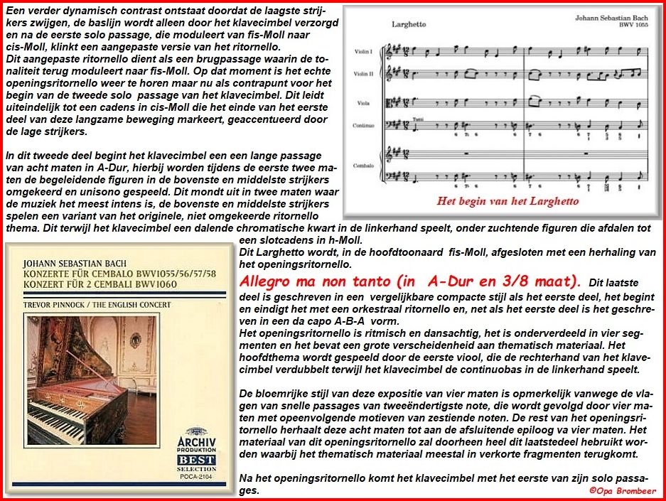 Vervolg en Historische achtergrond van Konzert für Cembalo d-Moll BWV 1052