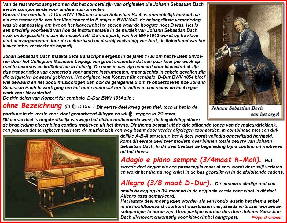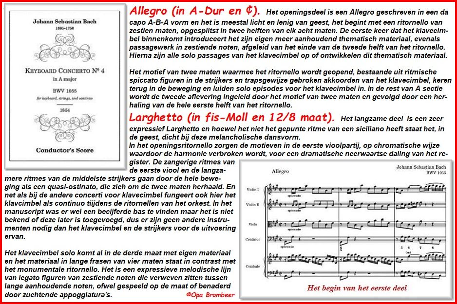 Vervolg . . Brandenburgisches Konzert No 4 G-Dur, BWV 1049 . . Biografie Johann Sebastian Bach