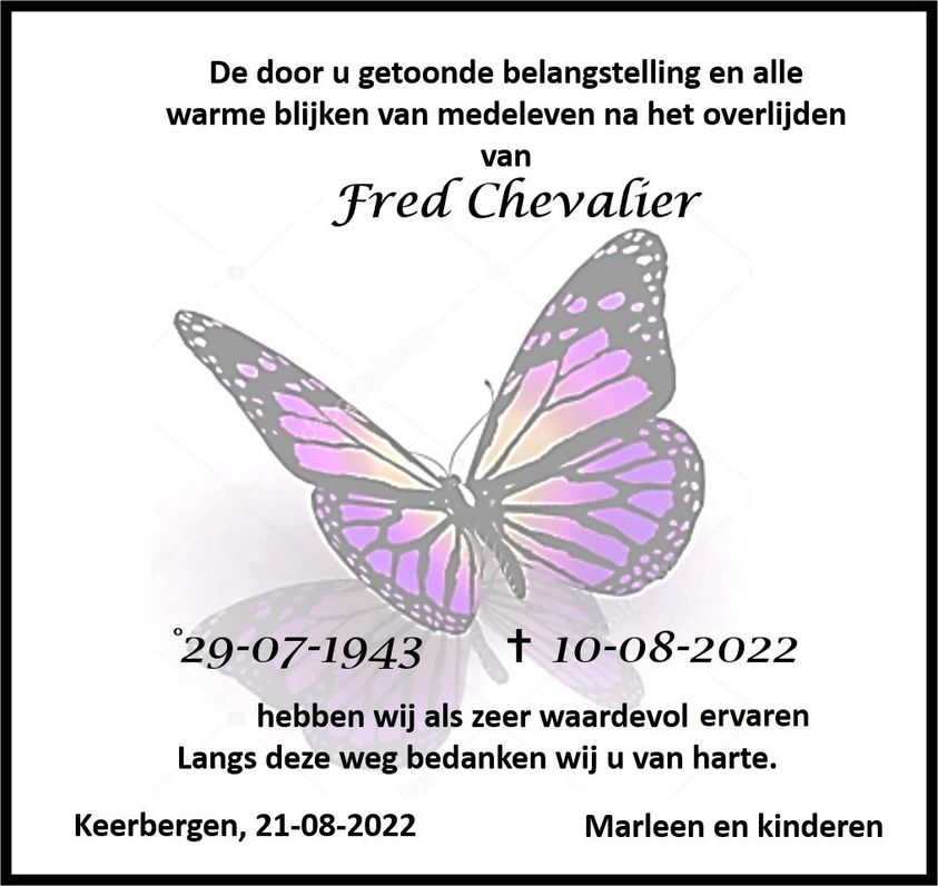 Fred011 of Fred Chevalier, is op 10 augustus, op 79 jarige leeftijd, rustig van ons heengegaan.