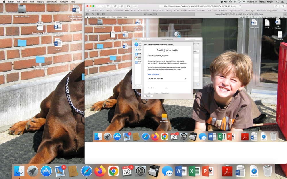 als ik mijn iMac (weliswaar oud) opstart met bijhorend paswoord dan verschijnt in de rechtse bovenhoek volgnde notification met G (van Google) vooraan : Google password required Enter your password for "kinget" in Internet Accounts. Als ik verder ga door te klikken op continue , eindig ik met de tekst, die u terugvindt als bijlage. Ik zou niet weten waarop "kinget" slaat ??