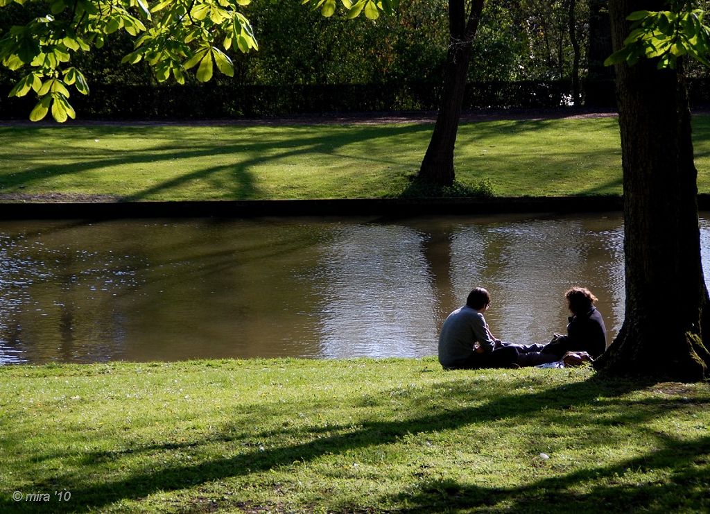 wachten totdat de paardjes aan het Minnewater, gegeten hebben.