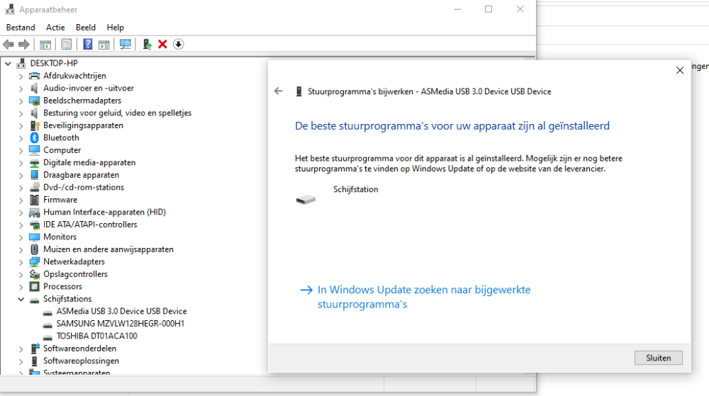 Onder apparaatbeheer is hij zichtbaar als "AS Media USB 3.0 Device USB Device"