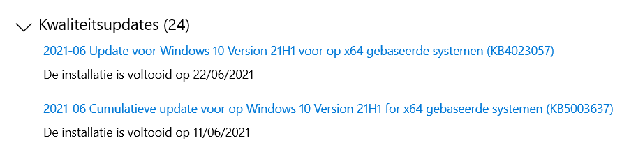 Ga ik gaan kijken bij "geschiedenis van de updates", dan heeft mijn pc'tje
