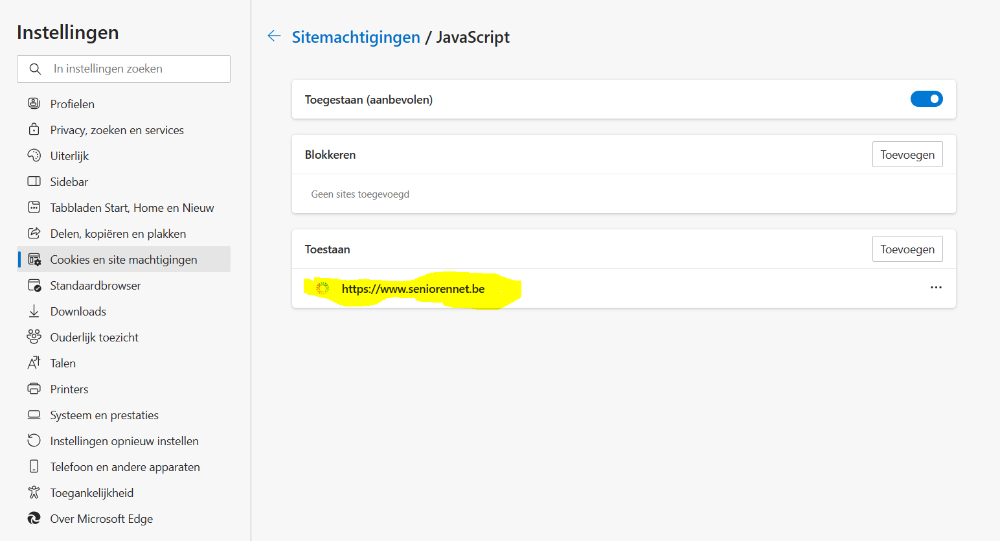 javaScript was toegestaan ( zie knipsel )