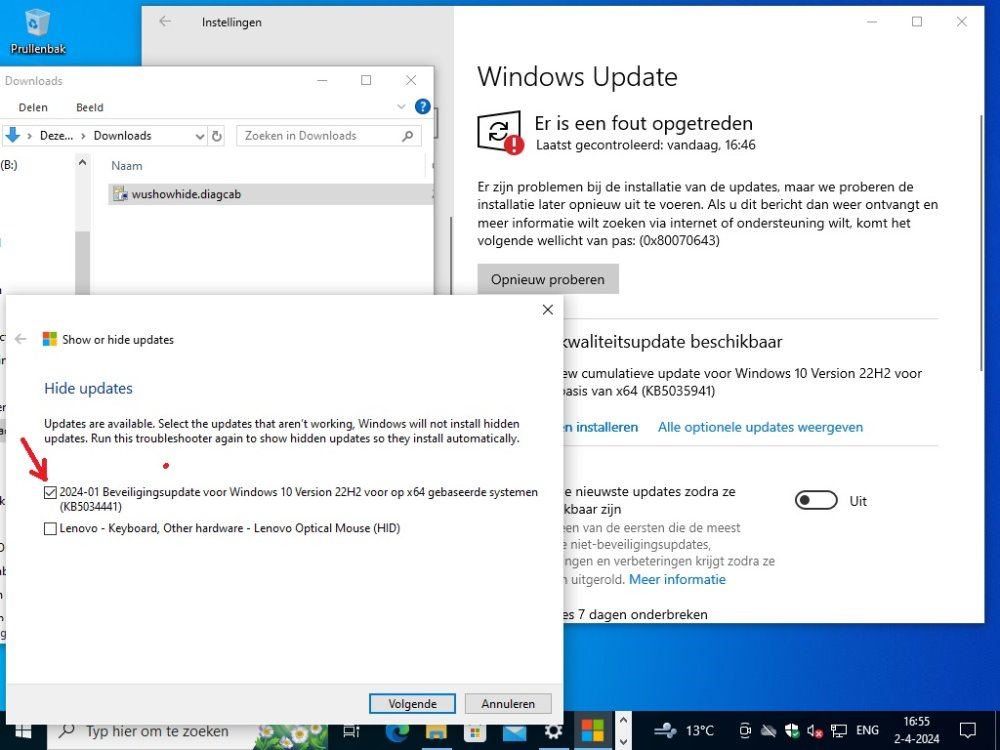 En is die KB5034441 update nu al succesvol geïnstalleerd geweest ? Neen hé , en dat zal ook niet gebeuren ...