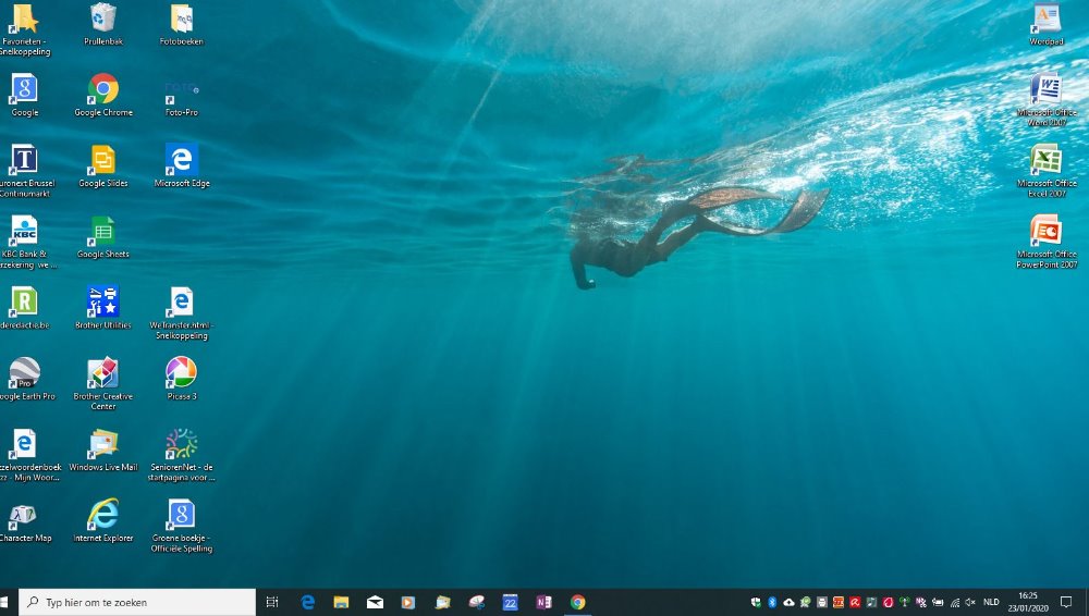 Wat jij denkt Win7 te zijn is gewoon het bureaublad dat meegenomen is naar Win10 tijdens de upgrade.Livia07 schreef: ↑23 jan 2020, 17:161. Als beginscherm krijg ik nog altijd het w7 scherm. (zie foto)
