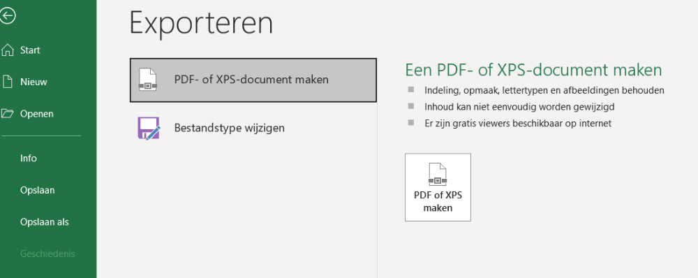 druk op exporteren met als gevolg maar waar kun je printer print pdf bestand maken? Je hebt keuze tussen pdf en XPS- document