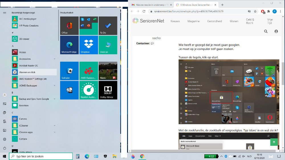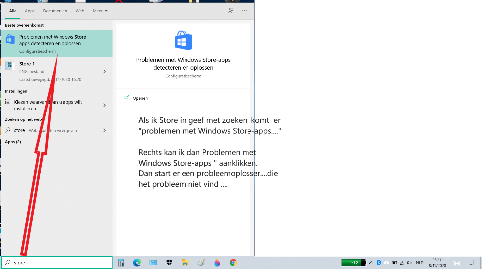 Met de zoekfunctie, de zoekbalk of vergrootglas. Typ 'store' in en wat zie ik?