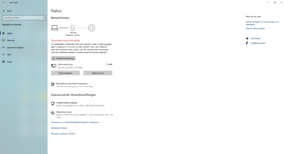 Ik werk bekabeld, maar niet rechtstreeks. Kabel PC gaat eerst naar witte doos telenet (wifi versterker?) die dan met kabel verbonden is met internet contact in de kamerwand. Was voordien ook zo, toen ik het probleem nog niet had.