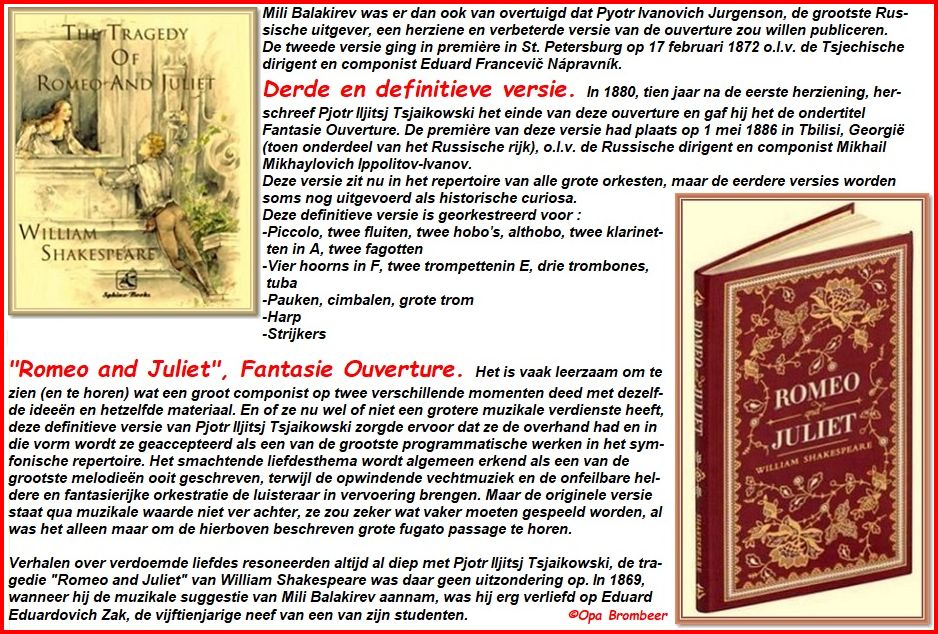 Luister nu naar "Romeo and Juliet", Fantasie Ouverture naar William Shakespeare Pjotr Iljitsj TSJAIKOWSKI.